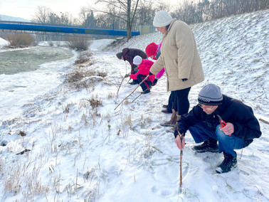 V měsíci lednu byly dny mrazivé a bez čepic a rukavic jsme se neobešli. To nám nebránilo uskutečnit krátkou vycházku kolem řeky Odry a projít se jiskřivým sněhem. Krásy kolem nás inspirovaly ke kresbě do sněhu a k pohybovým kreacím... :)